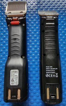So then I heard about a new cordless clipper on the market called the X3K. They're made in Taiwan, unlike the Heiniger Opals which are Swiss made; but they were also nearly $200 cheaper, so naturally I had to save up and try as set of those as well. Once again the best price I found was with Bob at Clipperland. The X3Ks arrived 2 days after ordering and very well packed, semi-charged, with Diamond Cut No: 10 blade already fitted, a cleaning brush and a 100ml bottle of clipper oil in the box.