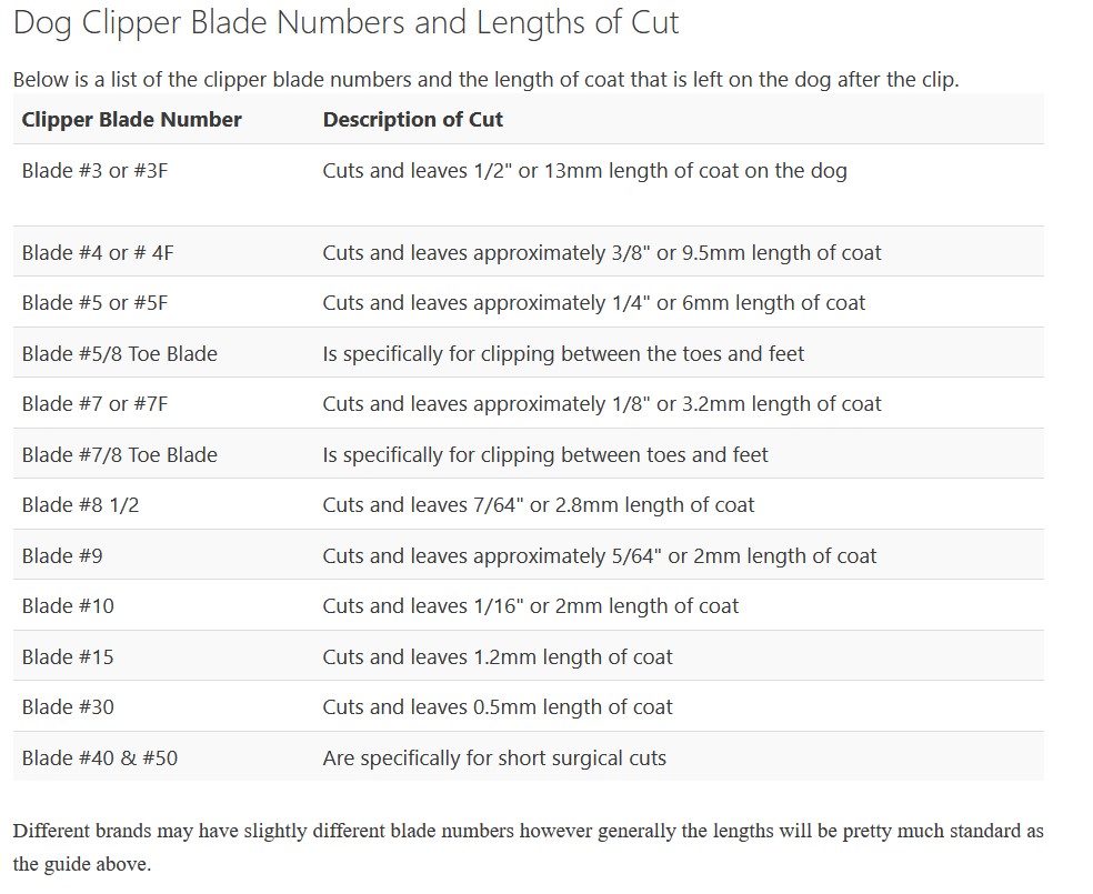 I have a quick guide to different size blades that I put