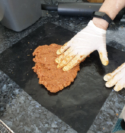 far right shows a hand-spread meat mix.