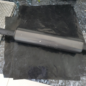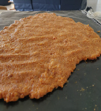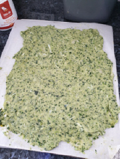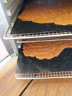 mixture is spread to your liking, slide the silicon sheet (or baking paper) onto
