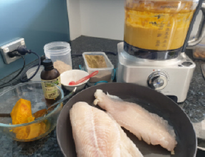 piece of cooked pumpkin (left over from Sunday lunch), a handful of chopped